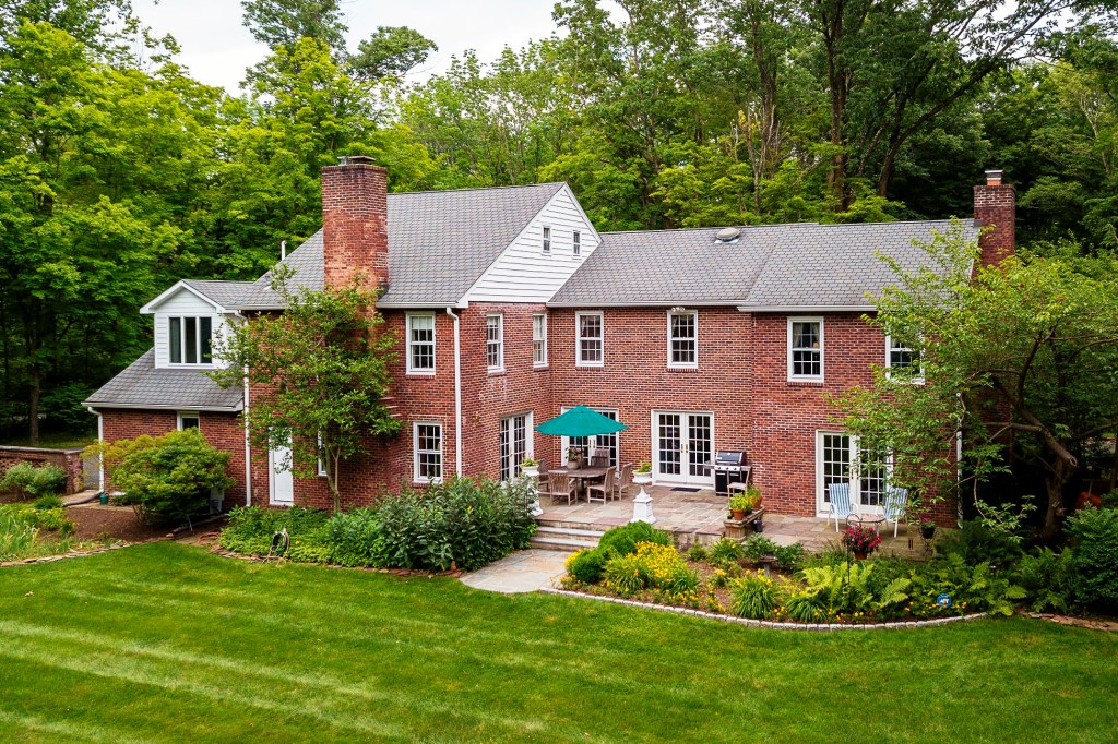 In Princeton’s Brookstone enclave, this east-facing, brick-wrapped Colonial has been brought completely up-to-date with fresh, youthful renovations that handle modern life with ease and style. Custom millwork of the highest quality fills the home, showcased by a graceful, hand-crafted bannister, which gives architectural presence to the 2-story front hall, and cherry paneled library with ceiling-high bookcases and a sunburst fireplace mantel. Four sets of French doors open to tiered bluestone terraces and gardens of lilies, irises, and monarch-attracting milkweed, framing the back of the home. A fully-fenced, garden-party backyard dazzles with views of a stacked stone wall, towering trees, and a bird’s eye view of babbling Stony Brook. Crown molding, recessed lights, and hardwood floors fill the 1st floor, including the living room, warm with a marble-framed gas fireplace, and formal dining room with a bay casement windows. Cherry cabinets, top-line stainless appliances, and granite counters gleam in the recently renovated kitchen. The mudroom/laundry room centers on the ultimate gas dryer/steamer – never send your sweaters out again! Front and back stairs rise to the 2nd floor, where you’ll be greeted by the carpeted family room, whose utility changes as needs change: playroom, hangout, movie night haven. A half bath is nearby – the home’s third! Three of the 4 bedrooms are suites with renovated baths and good closets. The master suite is so special with a closet-lined dressing room and a built-in marble dressing table, plus a beautiful bath that features a multi-jet shower with a rain fixture. A finished 3rd floor hosts a walk-in cedar closet, storage space and an office. Providing peace of mind are a replaced electric panel and furnace, plus a back-up generator. This leafy location is pretty much perfect: an easy 2 mile drive to downtown Princeton, and within strolling distance to Johnson Park School and Greenway Meadows Park!Note the lower taxes than comparable properties 2019, $23,547.00!